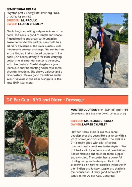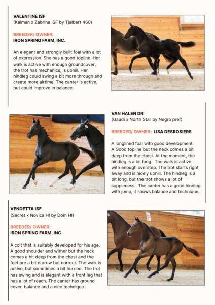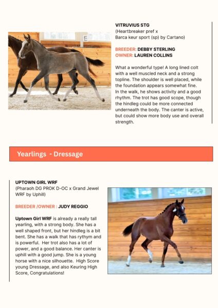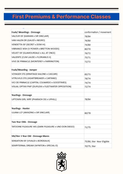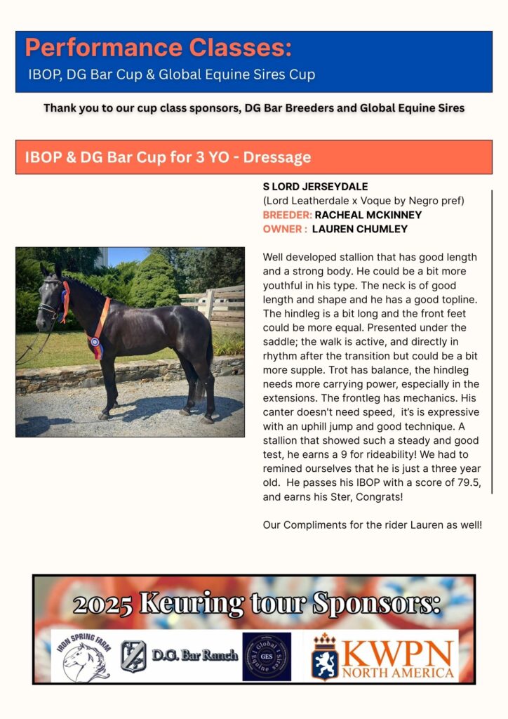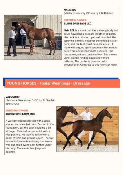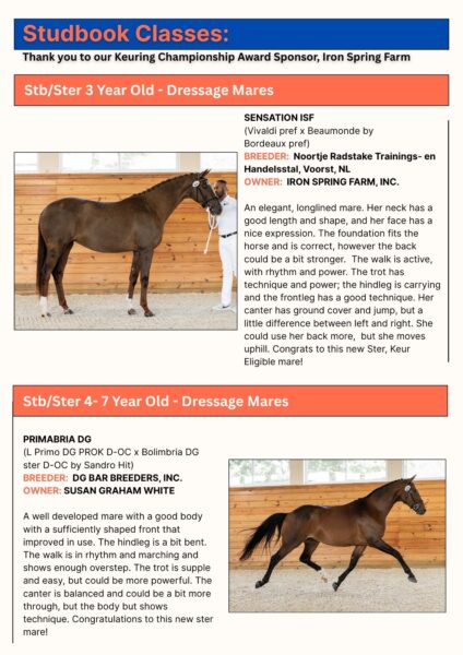 Please note that the judges only send us a write up on horses that stood out to them at a keuring. These reports hold all the first premiums and performance class results. For the other keuring results, you will be able to find them for each participating horse in their database page. Thank you Tracy Geller for creating these beautifully designed Reports with the judge’s information.