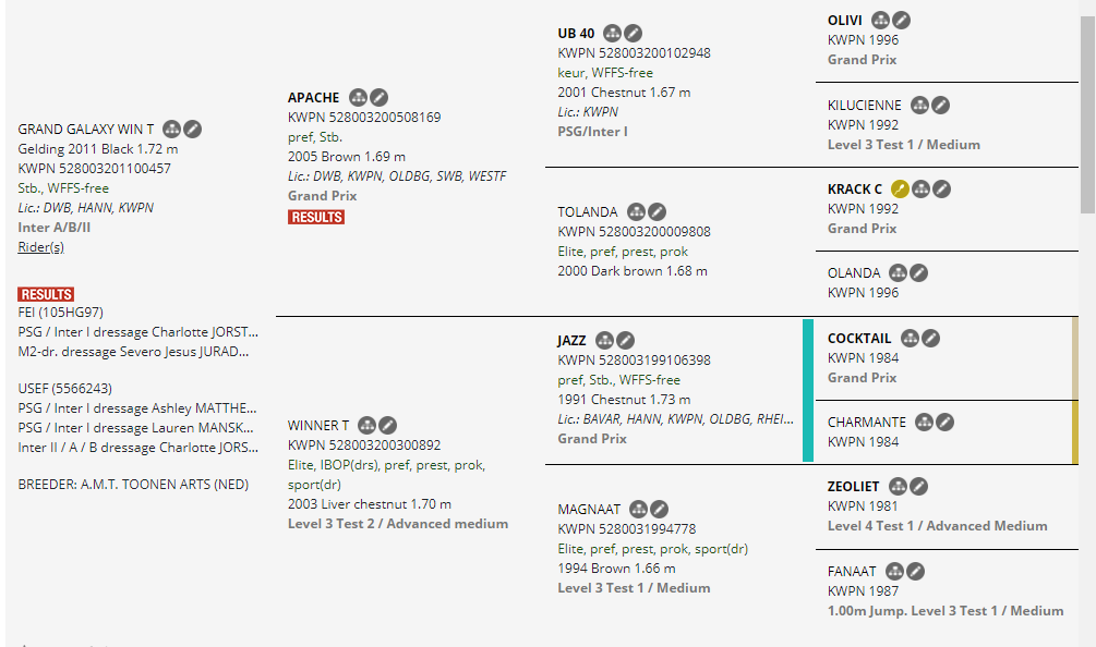 This world renowned stallion by Apache has taken the dressage breeding world by storm due to his refined type and movements. Galaxy is out of the elite mare Winner T, who is by the one and only top Grand Prix stallion Jazz. In the third generation, one finds Zeolit, sire of numerous Grand Prix offspring.
